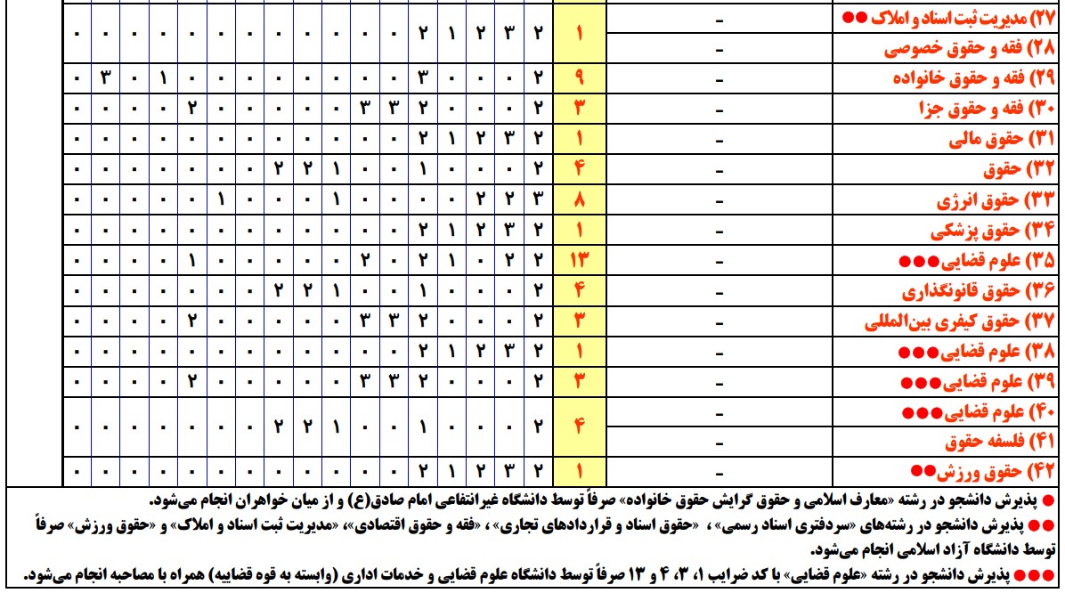 - ظرفیت پذیرش کارشناسی ارشد حقوق
