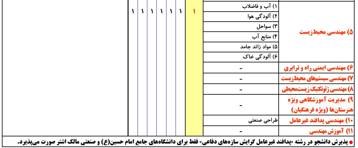 (پذیرش دانشجو در رشته پدافند غیرعامل فقط برای دانشگاههای جامع امام حسین و صنعتی مالک اشتر صورت میپذیرد)