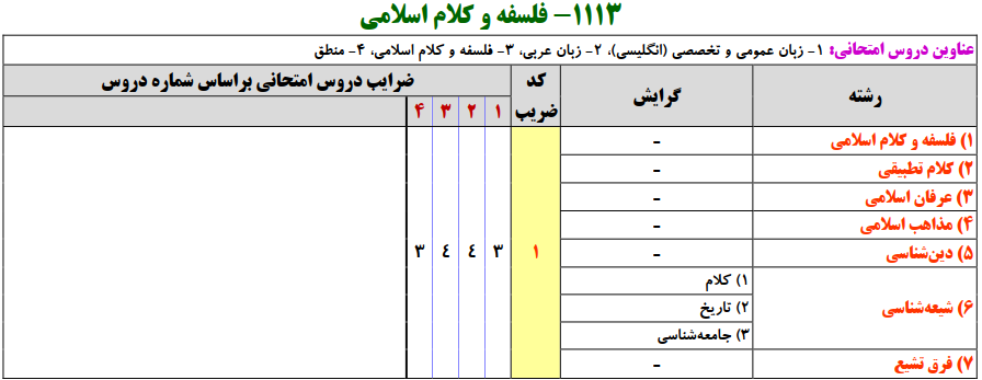 سرفصل و ضرایب دروس مجموعه فلسفه و کلام اسلامی در آزمون کارشناسی ارشد ( کد ۱۱۱۳ )