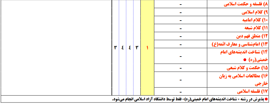 *پذیرش در رشته « شناخت اندیشه های امام خمینی(ره)» فقط توسط دانشگاه آزاد اسلامی انجام میشود.