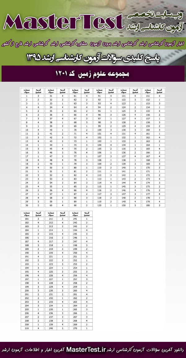 مشاهده پاسخ ( کلید ) سوالات کارشناسی ارشد ۹۵ مجموعه علوم زمین