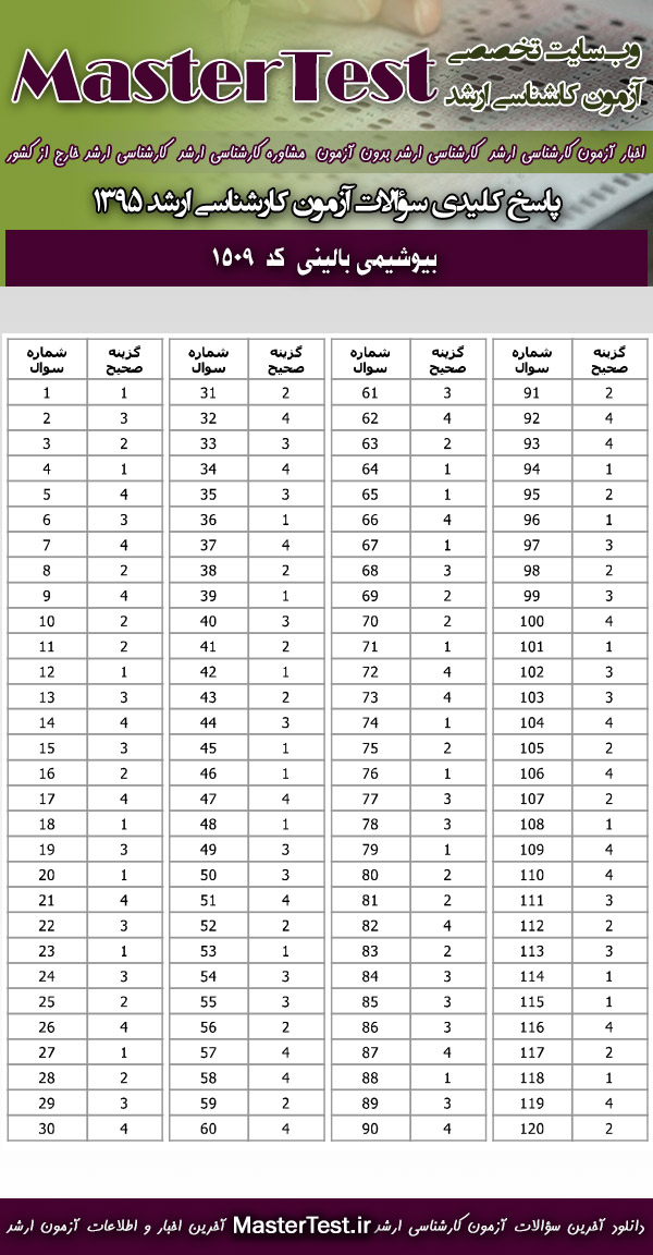 دانلود دفترچه سوالات آزمون کارشناسی ارشد ۹۵ سراسری بیوشیمی بالینی ( کد رشته ۱۵۰۹ )