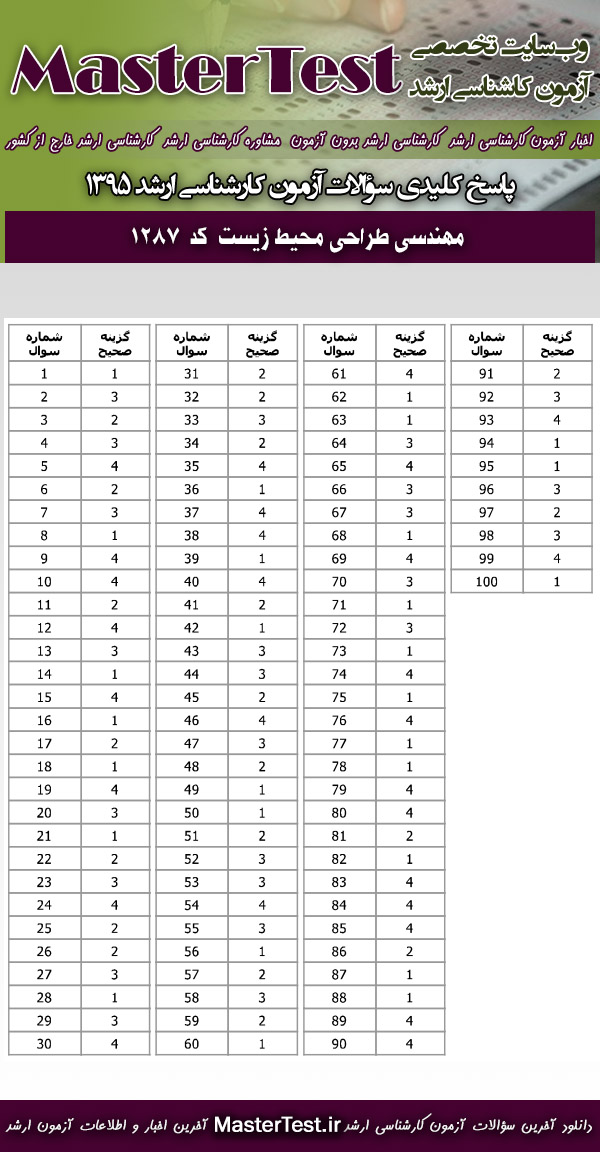 دانلود رایگان سوالات آزمون کارشناسی ارشد سراسری ۹۵مهندسی طراحی محیط زیست