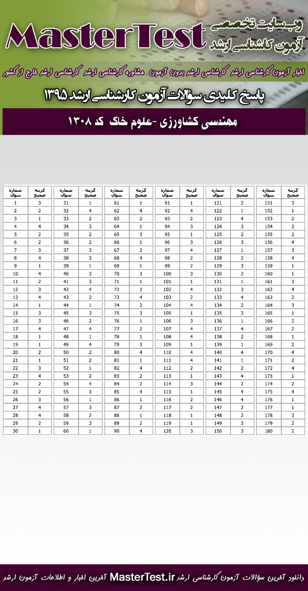 دانلود دفترچه سوالات آزمون کارشناسی ارشد ۹۵ سراسری مهندسی کشاورزی- علوم خاک( کد رشته ۱۳۰۸ )