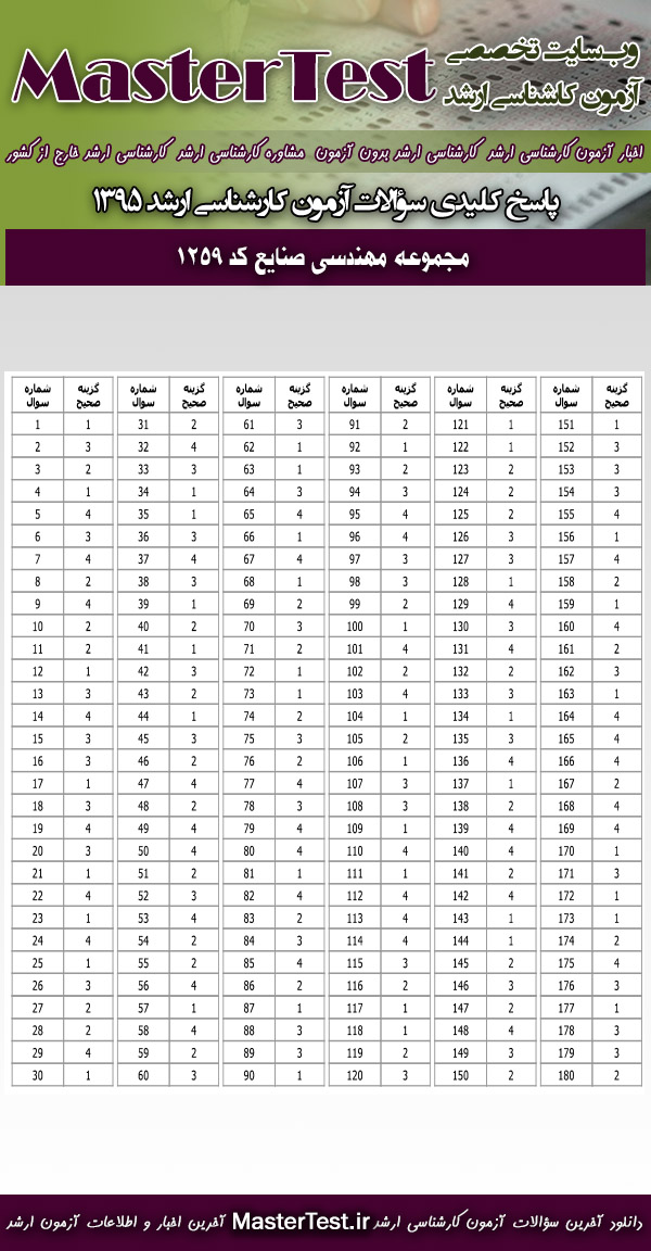 دانلود دفترچه سوالات آزمون کارشناسی ارشد ۹۵ سراسری مجموعه مهندسی صنایع ( کد رشته ۱۲۵۹ )