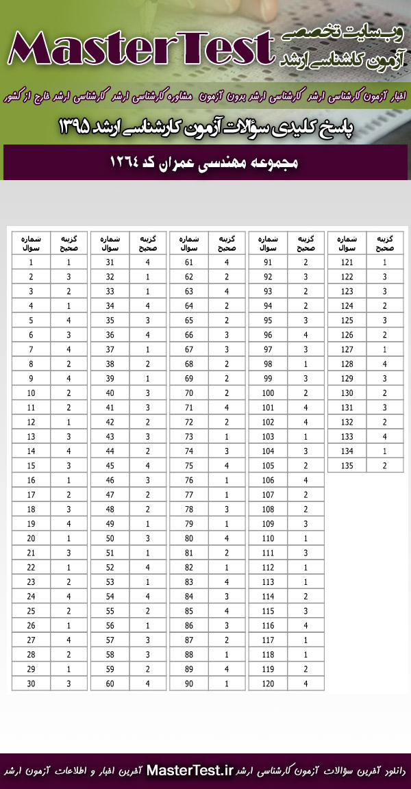 دانلود دفترچه سوالات آزمون کارشناسی ارشد ۹۵ سراسری مجموعه مهندسی عمران( کد رشته ۱۲۶۴ )
