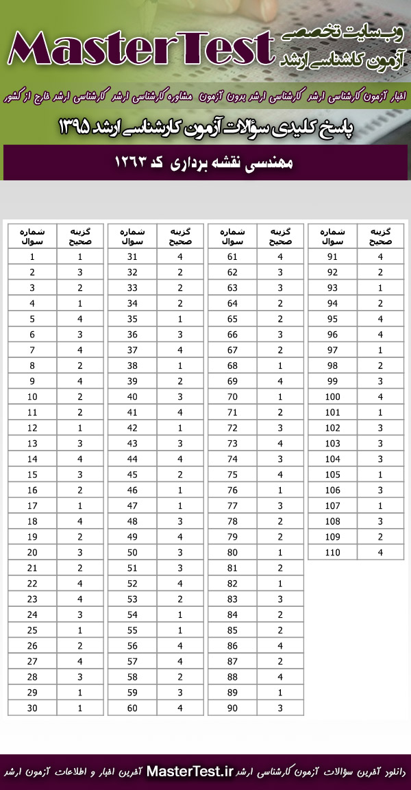 دانلود دفترچه سوالات آزمون کارشناسی ارشد ۹۵ سراسری مهندسی نقشه برداری( کد رشته ۱۲۶۳ )