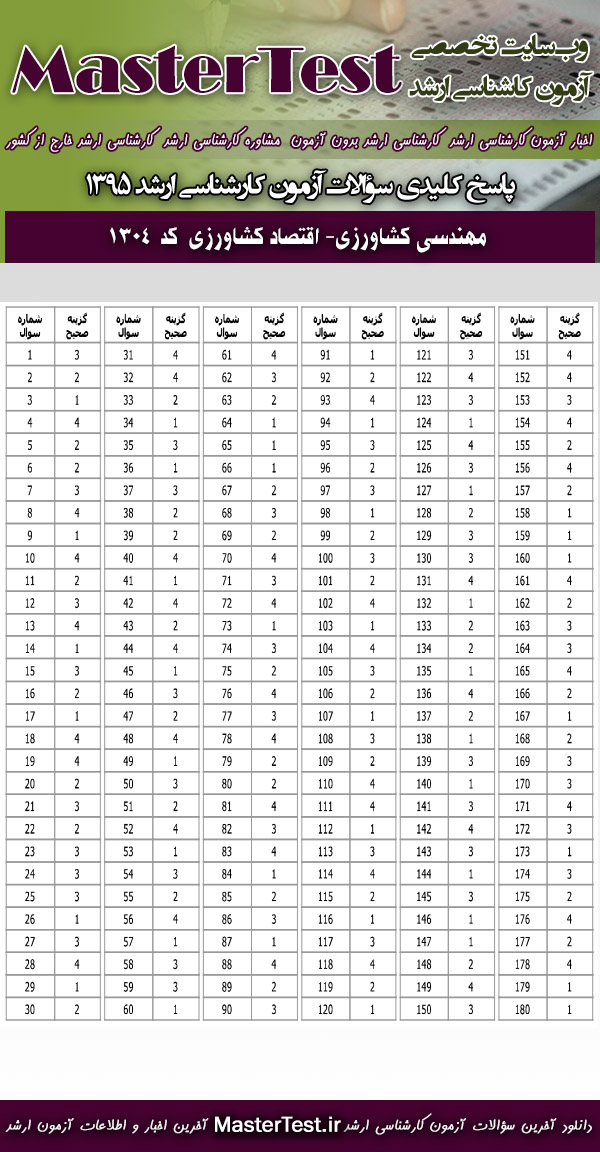 دانلود دفترچه سوالات آزمون کارشناسی ارشد ۹۵ سراسری مهندسی کشاورزی- اقتصاد کشاورزی( کد رشته ۱۳۰۴ )