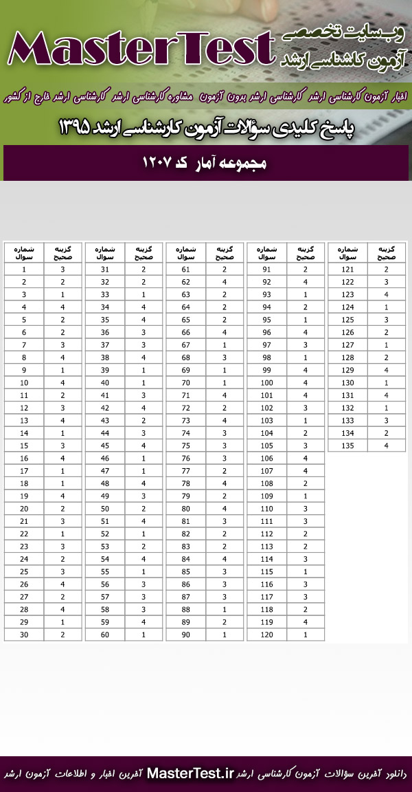 دانلود دفترچه سوالات آزمون کارشناسی ارشد ۹۵ سراسری آمار و کاربردها ( کد رشته ۱۲۰۷ )