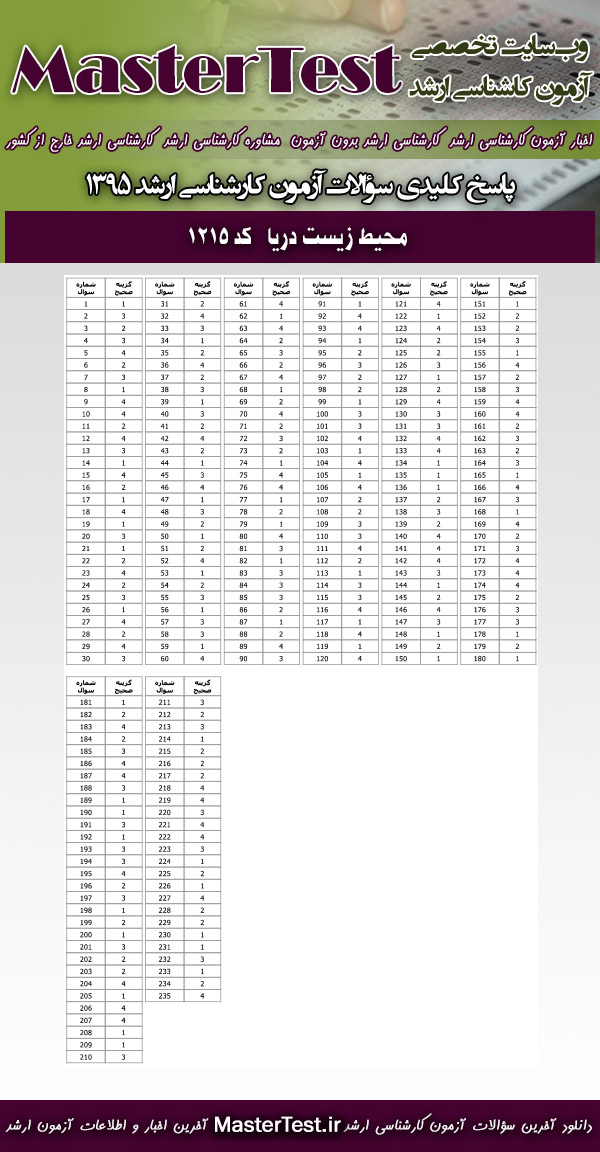 دانلود دفترچه سوالات آزمون کارشناسی ارشد ۹۵ سراسری محیط زیست دریا ( کد رشته ۱۲۱۵ )