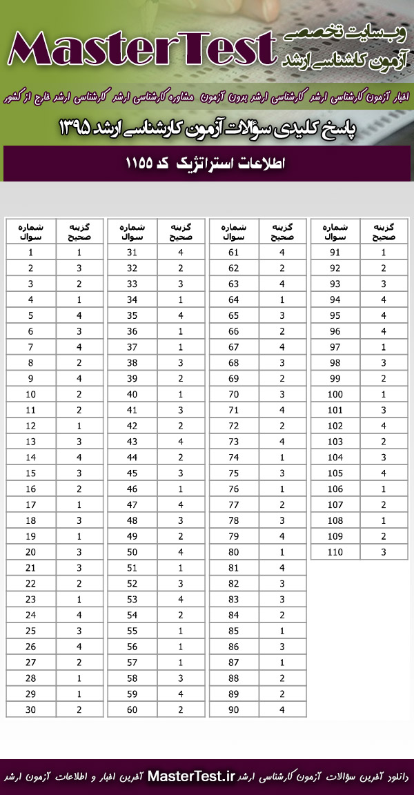 دانلود دفترچه سوالات آزمون کارشناسی ارشد ۹۵ سراسری اطلاعات استراتژیک ( کد ۱۱۵۵ )