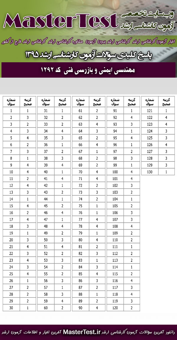 دانلود دفترچه سوالات آزمون کارشناسی ارشد ۹۵ سراسری مهندسی ایمنی و بازرسی فنی (کد رشته ۱۲۹۲)