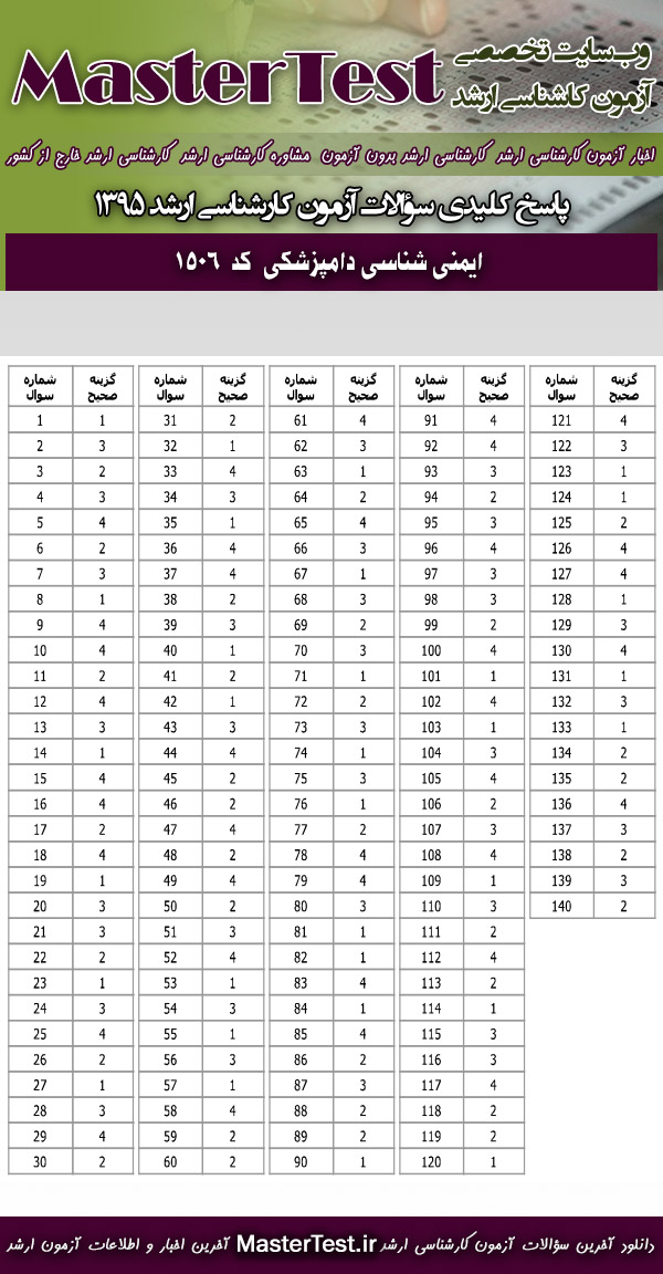 کاربران عزیز مستر تست می توانند سوالات تست آزمون کارشناسی ارشد سراسری اردیبهشت ماه ۱۳۹۵ رشته ایمنی شناسی دامپزشکی را از طریق لینک زیر به صورت رایگان دانلود نمایند.