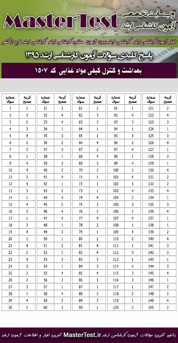 دانلود دفترچه سوالات آزمون کارشناسی ارشد ۹۵ سراسری بهداشت و کنترل کیفی مواد غذایی ( کد رشته ۱۵۰۷ )
