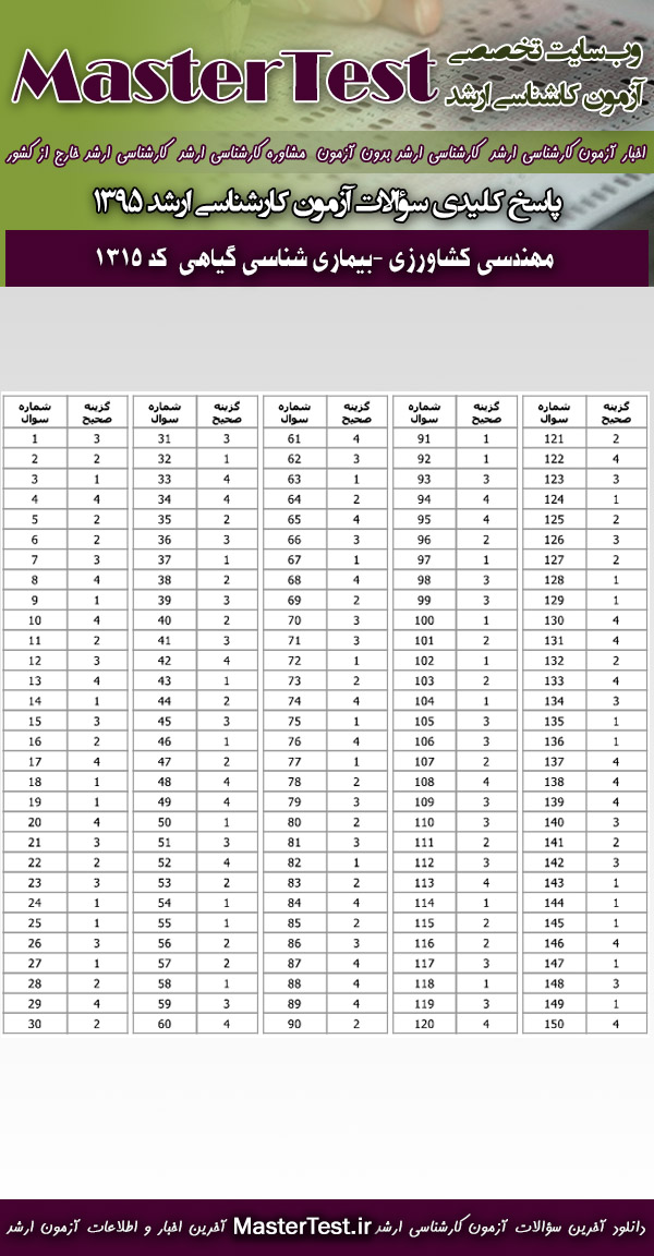 دانلود دفترچه سوالات آزمون کارشناسی ارشد ۹۵ سراسری مهندسی کشاورزی- بیماری شناسی گیاهی ( کد رشته ۱۳۱۵ )
