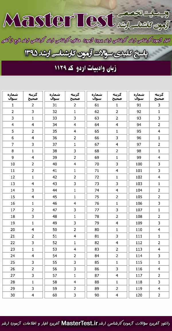 کاربران گرامی مستر تست می توانند سوالات تست آزمون کارشناسی ارشد سراسری اردیبهشت ماه ۱۳۹۵ رشته زبان و ادبیات اردو را از طریق لینک زیر به صورت رایگان دانلود نمایند.