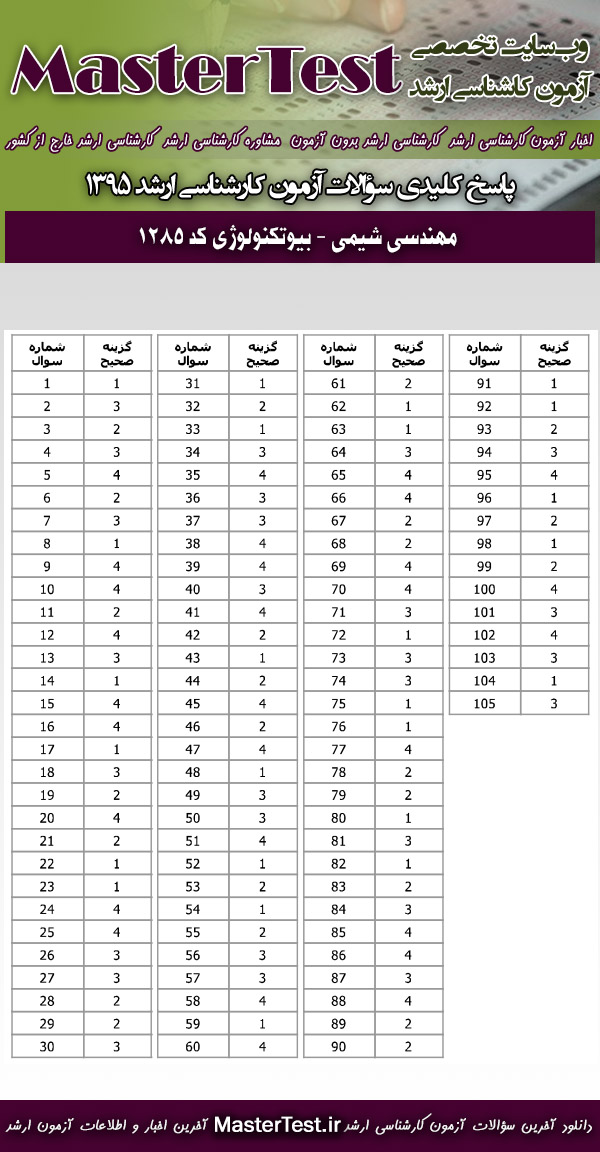 دانلود دفترچه سوالات آزمون کارشناسی ارشد ۹۵ سراسری مهندسی شیمی – بیوتکنولوژی( کد رشته ۱۲۸۵ )