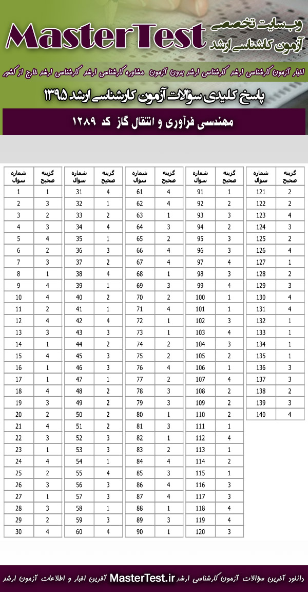 دانلود دفترچه سوالات آزمون کارشناسی ارشد ۹۵ سراسری مهندسی فرآوری و انتقال گاز( کد رشته ۱۲۸۹ )