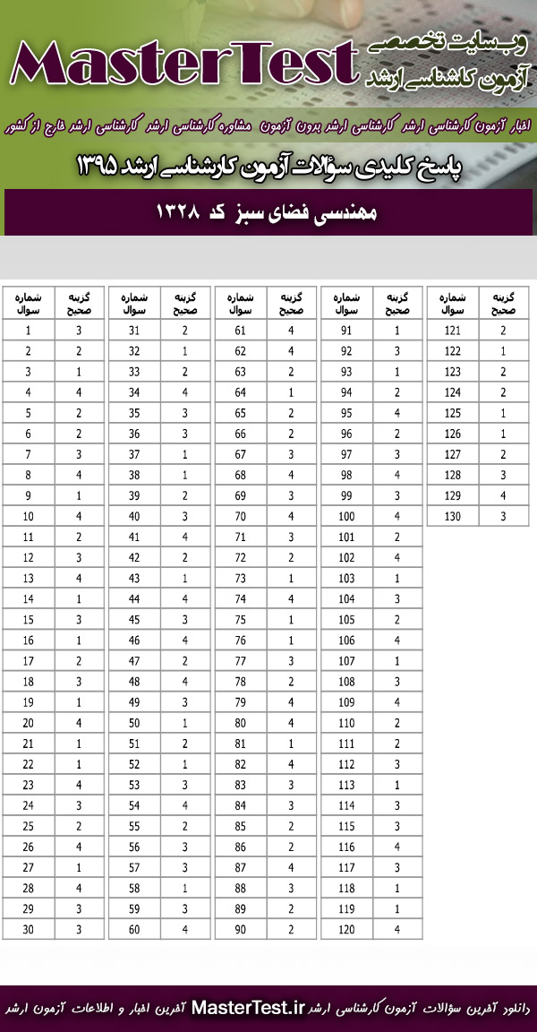 کاربران عزیز مستر تست می توانند سوالات کنکور کارشناسی ارشد سراسری اردیبهشت ۹۵ رشته مهندسی فضای سبز را از طریق لینک زیر به صورت رایگان دانلود نمایند.