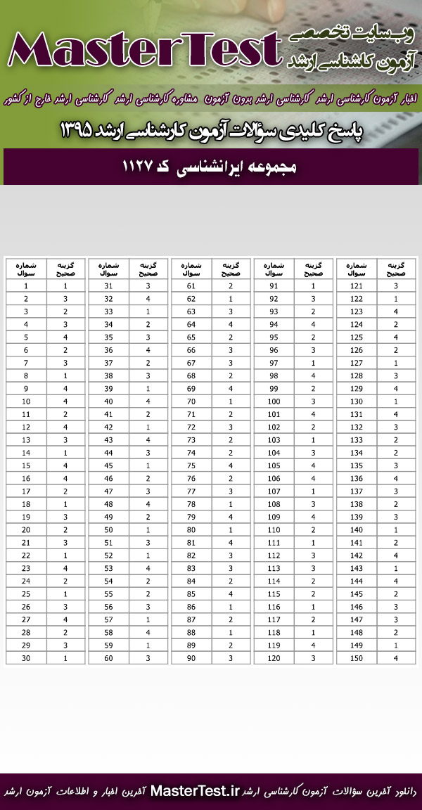 کاربران گرامی مستر تست می توانند سوالات تست آزمون کارشناسی ارشد سراسری اردیبهشت ماه ۱۳۹۵ رشته مجموعه ایرانشناسی را از طریق لینک زیر به صورت رایگان دانلود نمایند.