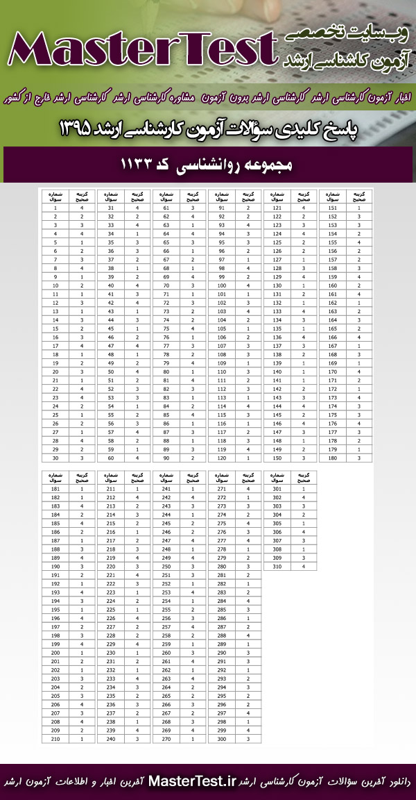 مشاهده پاسخ ( کلید ) سوالات کارشناسی ارشد ۹۵ مجموعه روانشناسی
