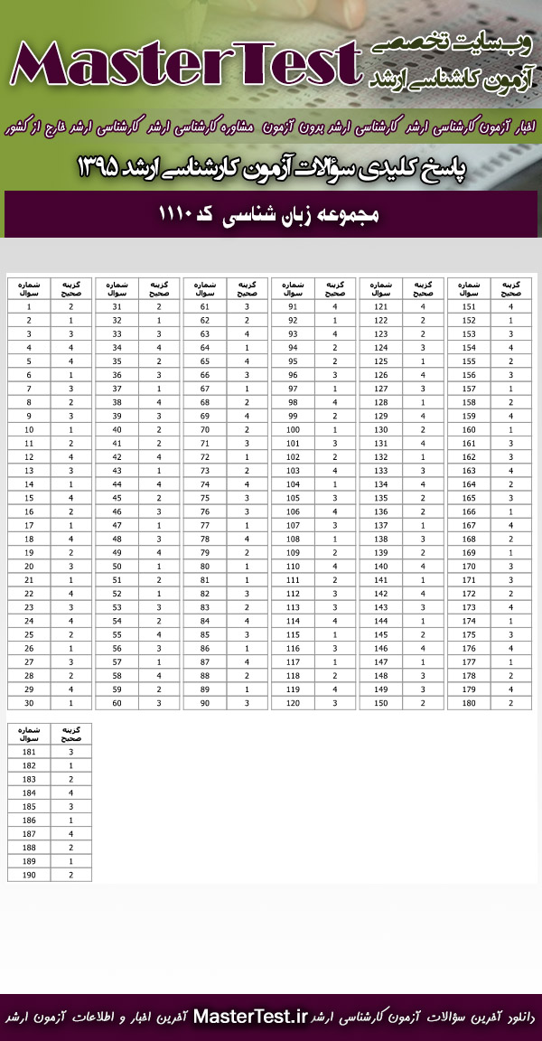 کاربران گرامی مستر تست می توانند سوالات تست آزمون کارشناسی ارشد سراسری اردیبهشت ماه ۱۳۹۵ رشته مجموعه زبان شناسی را از طریق لینک زیر به صورت رایگان دانلود نمایند.