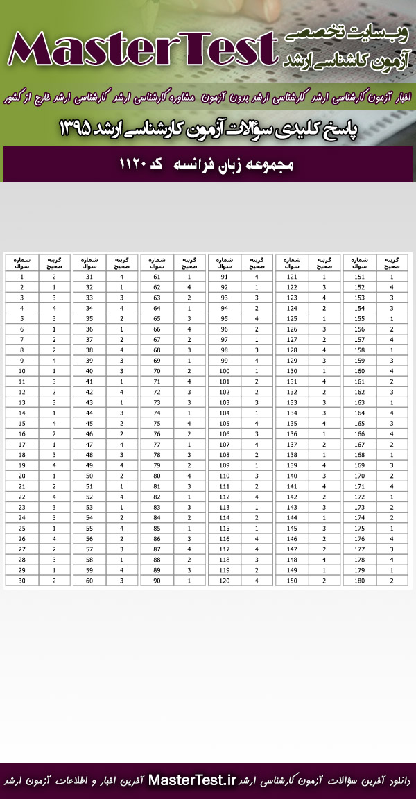 مشاهده پاسخ ( کلید ) سوالات کارشناسی ارشد ۹۵ مجموعه زبان فرانسه