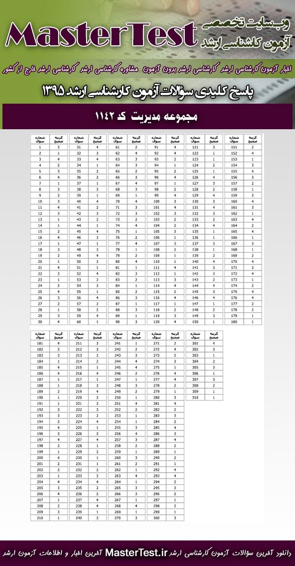 دانلود دفترچه سوالات آزمون کارشناسی ارشد ۹۵ سراسری مجموعه مدیریت ( کد ۱۱۴۲ )