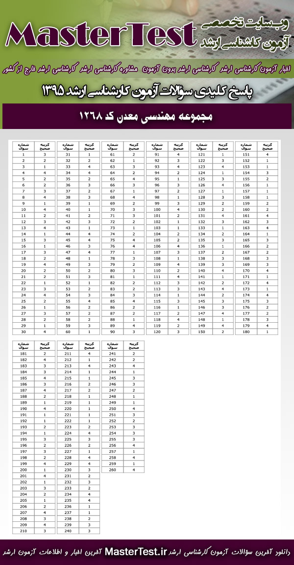 دانلود دفترچه سوالات آزمون کارشناسی ارشد ۹۵ سراسری مجموعه مهندسی معدن ( کد رشته ۱۲۶۸ )