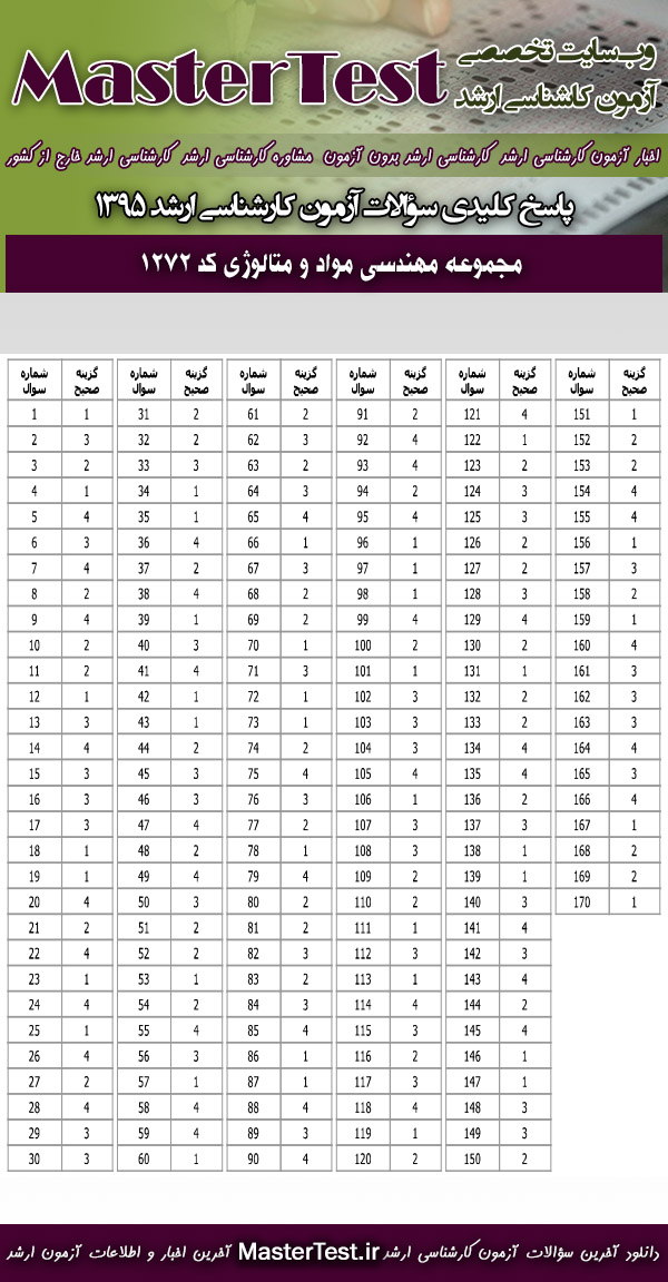 دانلود دفترچه سوالات آزمون کارشناسی ارشد ۹۵ سراسری مجموعه مهندسی مواد( کد رشته ۱۲۷۲ )