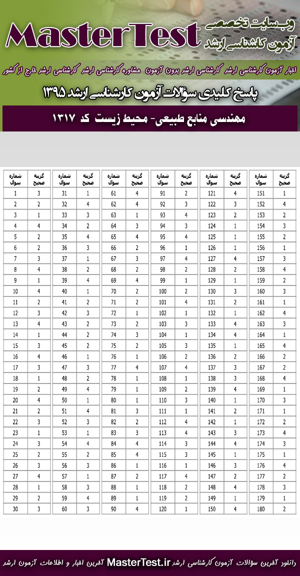 دانلود دفترچه سوالات آزمون کارشناسی ارشد ۹۵ سراسری مهندسی منابع طبیعی- محیط زیست( کد رشته ۱۳۱۷ )