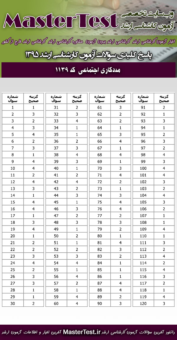 دانلود دفترچه سوالات آزمون کارشناسی ارشد ۹۵ سراسری مددکاری اجتماعی ( کد ۱۱۳۹ )