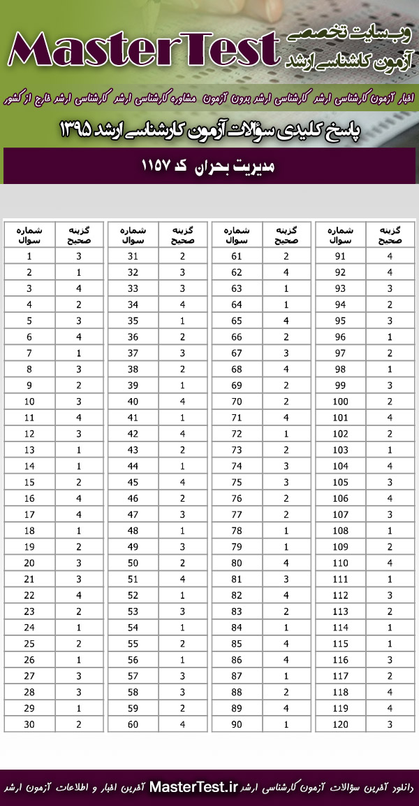 دانلود دفترچه سوالات آزمون کارشناسی ارشد ۹۵ سراسری مدیریت بحران ( کد ۱۱۵۷ )