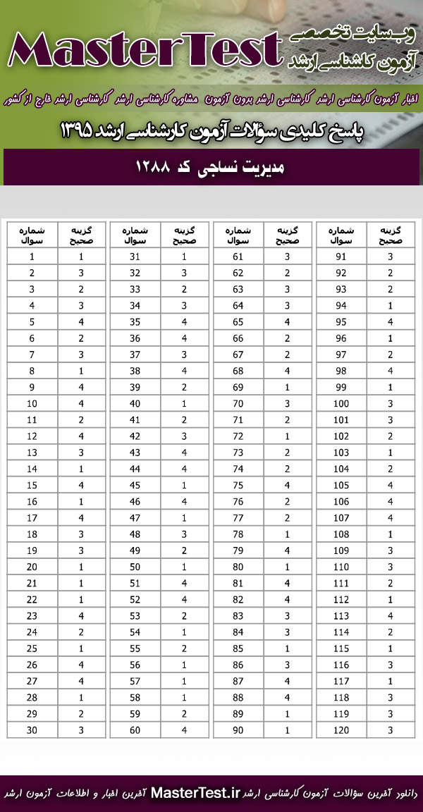 دانلود دفترچه سوالات آزمون کارشناسی ارشد ۹۵ سراسری مدیریت نساجی( کد رشته ۱۲۸۸ )