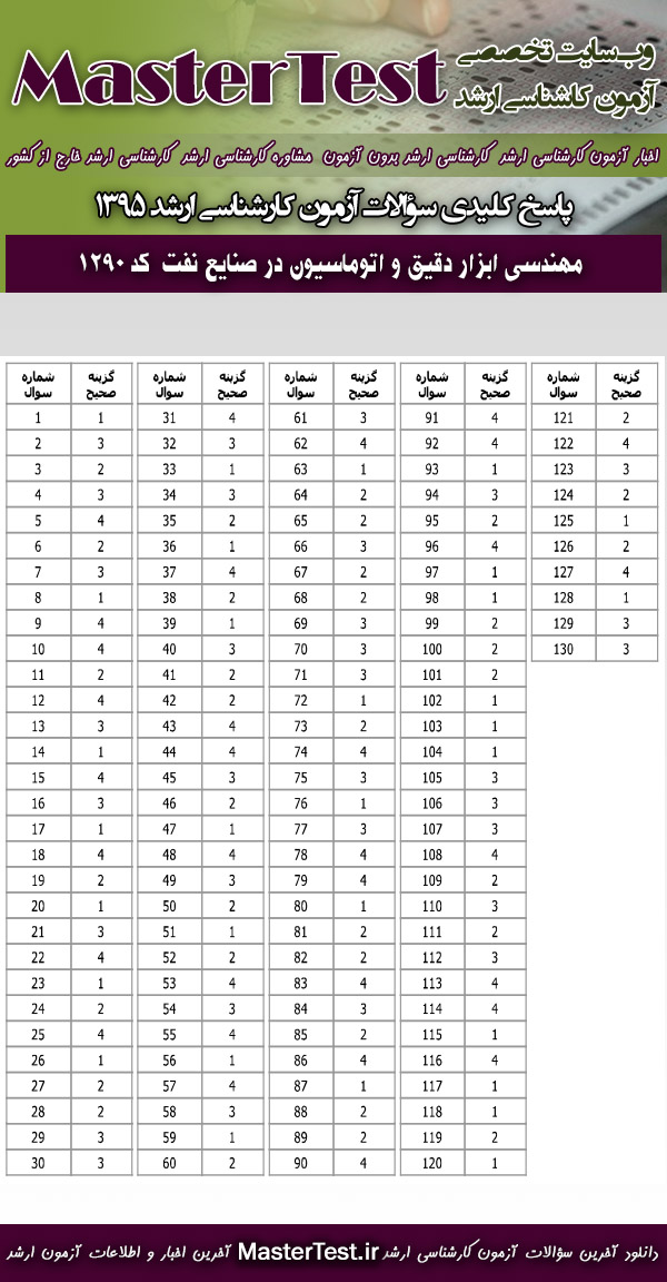دانلود دفترچه سوالات آزمون کارشناسی ارشد ۹۵ سراسری مهندسی ابزار دقیق و اتوماسیون در صنایع نفت( کد رشته ۱۲۹۰ )