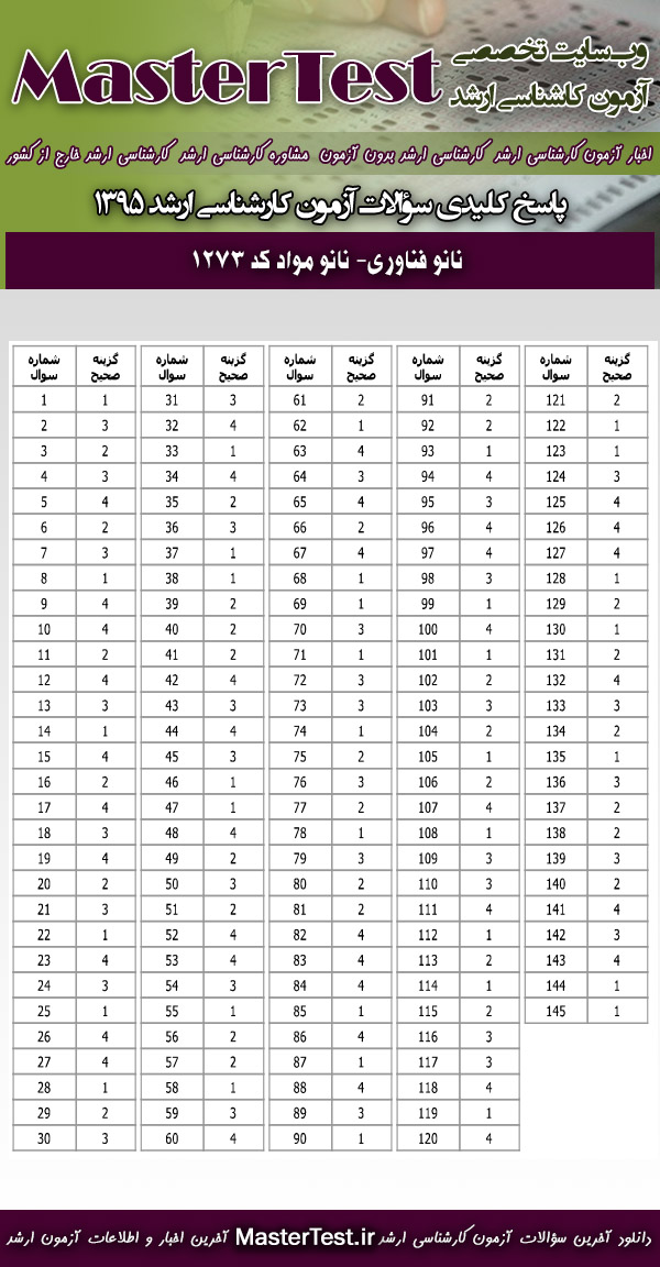 دانلود دفترچه سوالات آزمون کارشناسی ارشد ۹۵ سراسری نانو فناوری- نانو مواد( کد رشته ۱۲۷۳ )