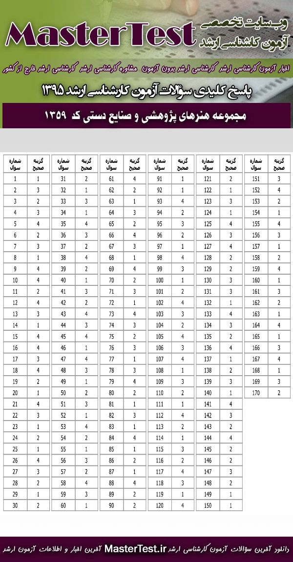 دانلود دفترچه سوالات آزمون کارشناسی ارشد ۹۵ سراسری مجموعه هنرهای پژوهشی و صنایع دستی ( کد رشته ۵۹۱۳ )