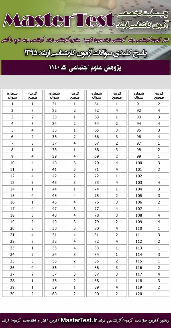 کاربران گرامی مستر تست می توانند سوالات تست آزمون کارشناسی ارشد سراسری اردیبهشت ماه ۱۳۹۵ رشته پژوهش علوم اجتماعی را از طریق لینک زیر به صورت رایگان دانلود نمایند.