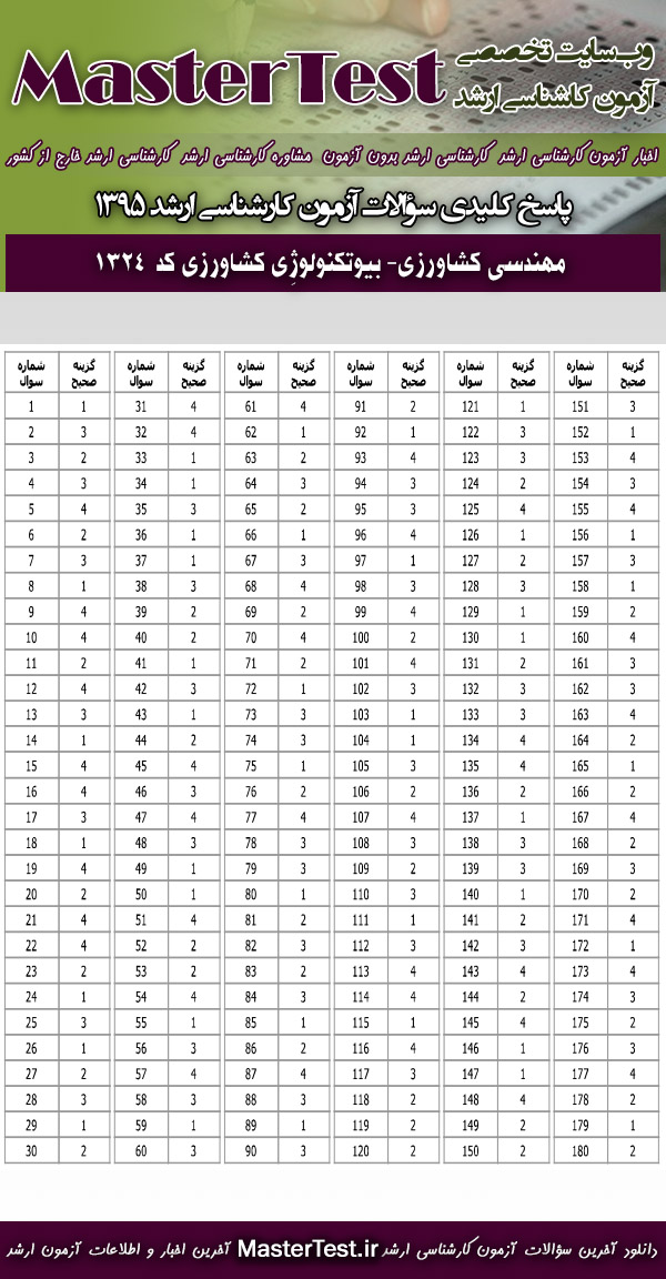 دانلود دفترچه سوالات آزمون کارشناسی ارشد ۹۵ سراسری مهندسی کشاورزی- بیوتکنولوژِی کشاورزی( کد رشته ۱۳۲۴ )