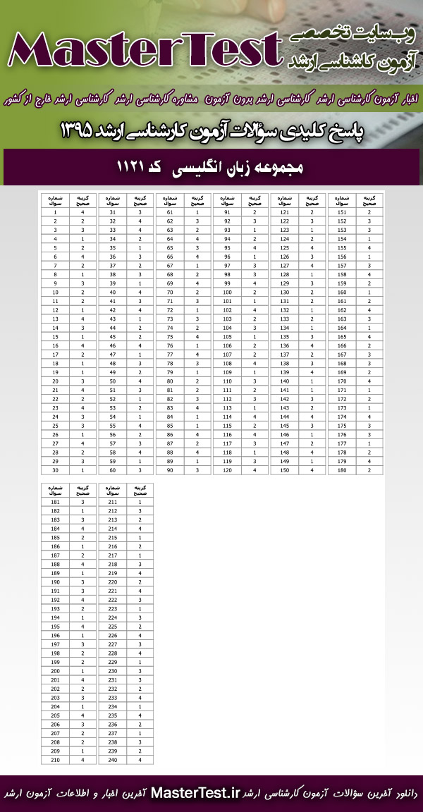 کاربران گرامی مستر تست می توانند سوالات تست آزمون کارشناسی ارشد سراسری اردیبهشت ماه ۱۳۹۵ رشته مجموعه زبان انگلیسی را از طریق لینک زیر به صورت رایگان دانلود نمایند.