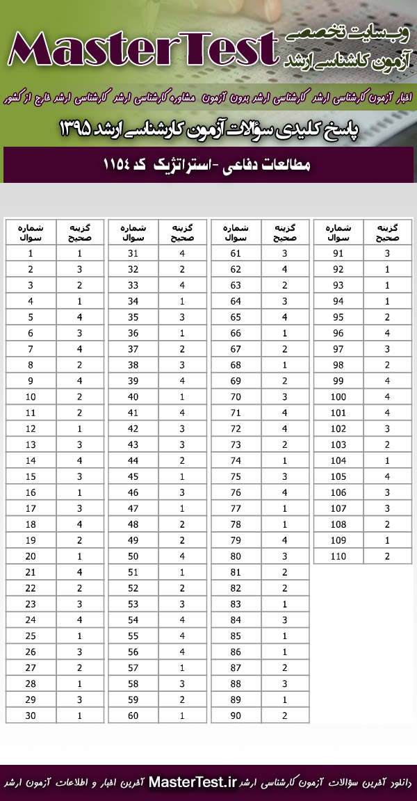 دانلود دفترچه سوالات آزمون کارشناسی ارشد ۹۵ سراسری مطالعات دفاعی، استراتژیک ( کد ۱۱۵۴ )