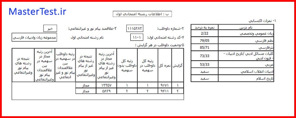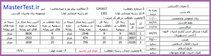 کارنامه رتبههای برتر کنکور کارشناسی ارشد رشته زبان و ادبیات فارسی کد ۱۱۰۱