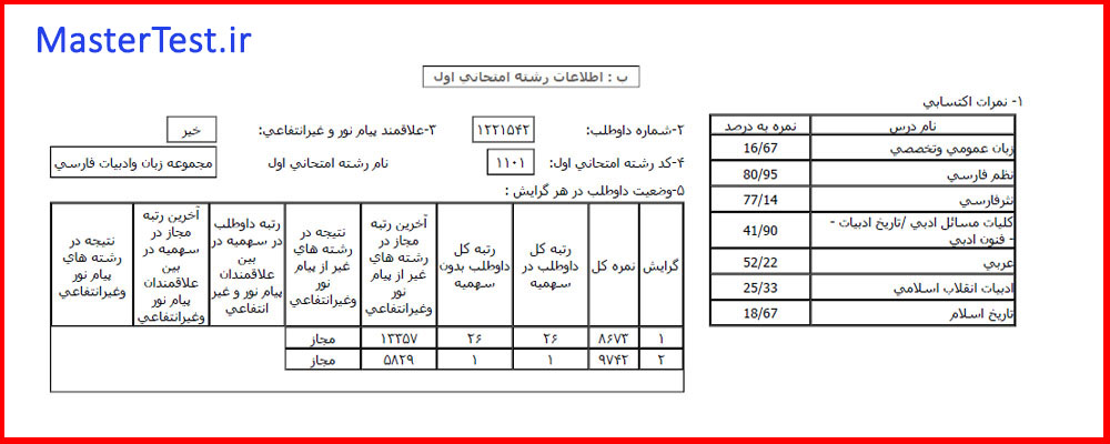 کارنامههای رتبههای برتر آزمون کارشناسی ارشد رشته زبان و ادبیات فارسی جهت اطلاع کاربران عزیز تقدیم میگردد: