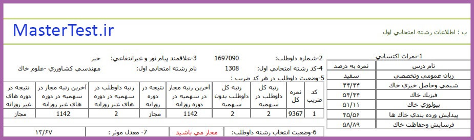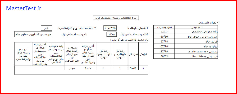 کارنامه رتبههای برتر کنکور کارشناسی ارشد رشته مهندسی کشاورزی-علوم خاک کد ۱۳۰۸