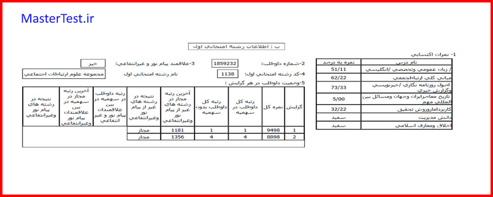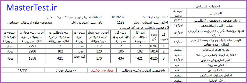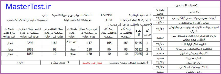 کارنامه رتبههای برتر کنکور کارشناسی ارشد رشته علوم ارتباطات اجتماعی کد ۱۱۳۸