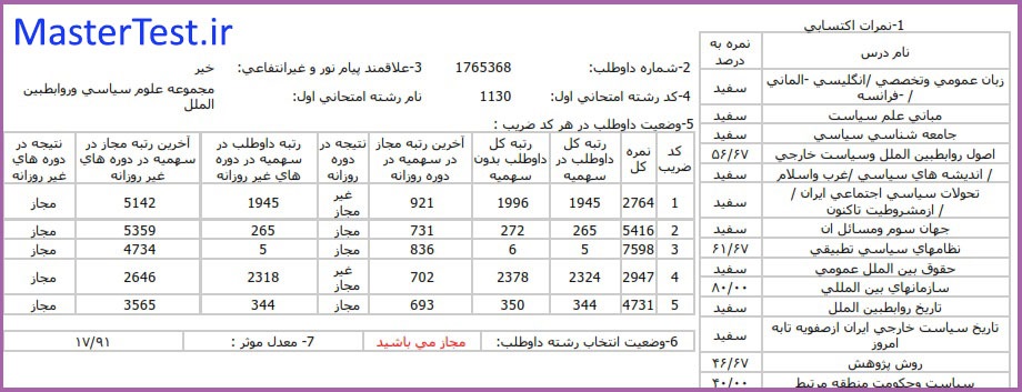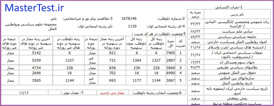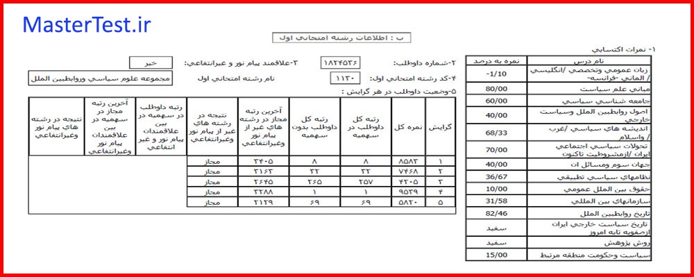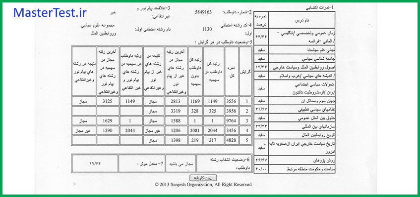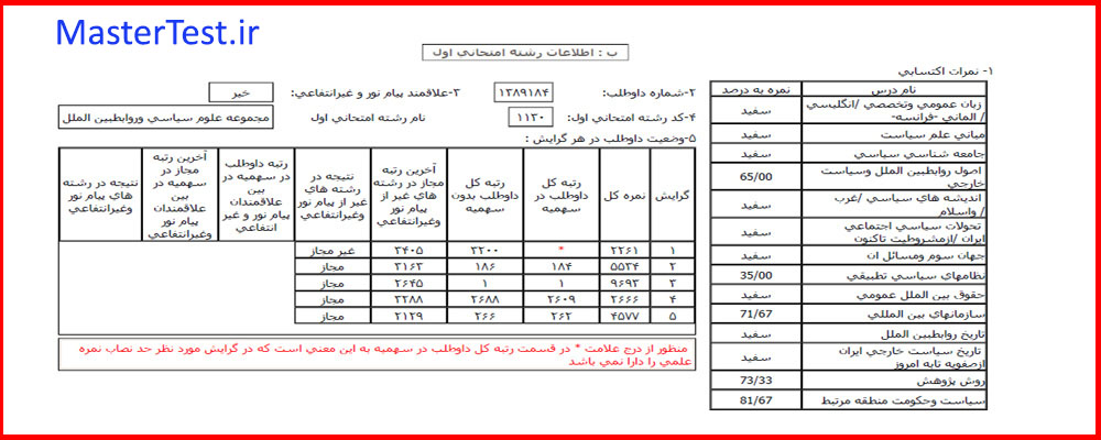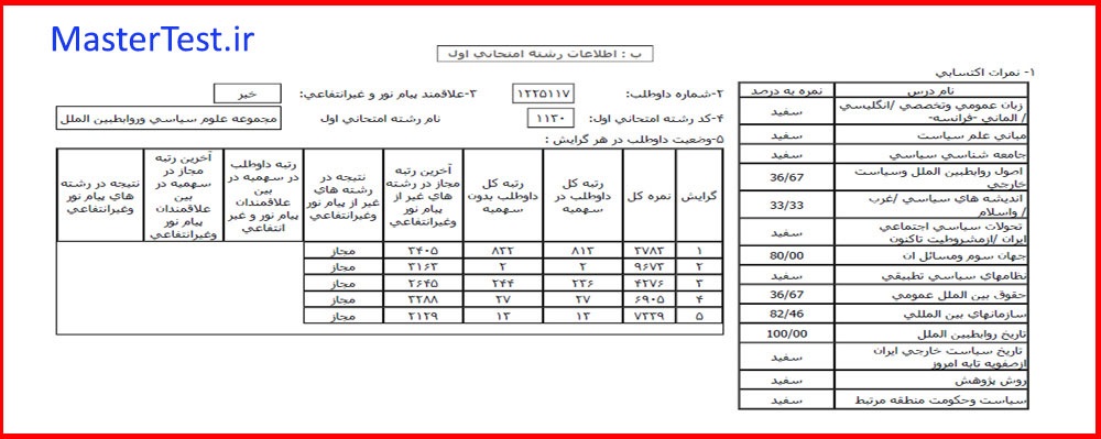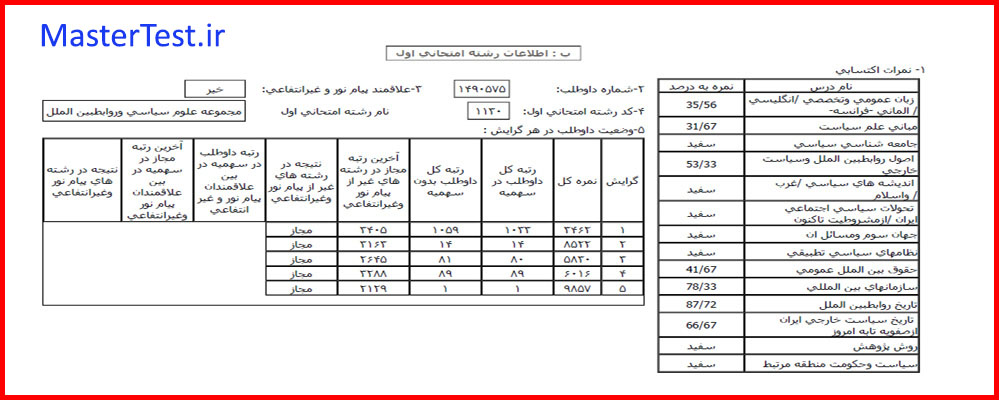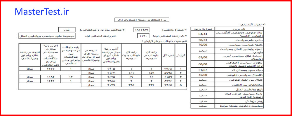 کارنامههای رتبههای برتر آزمون کارشناسی ارشد رشته علوم سیاسی و روابط بینالملل جهت اطلاع کاربران عزیز تقدیم میگردد: