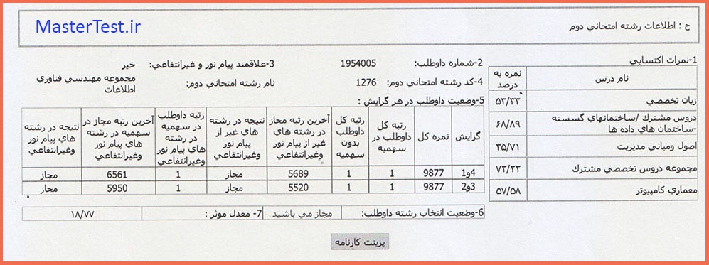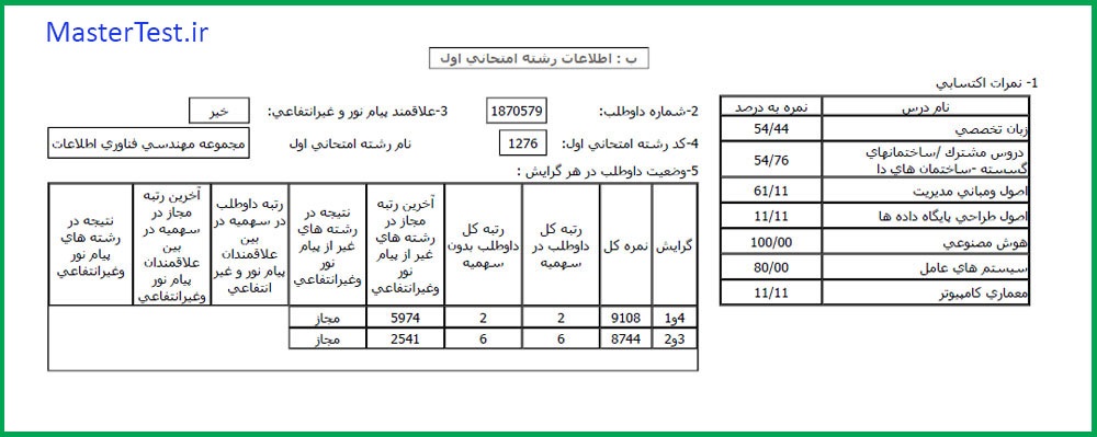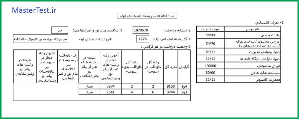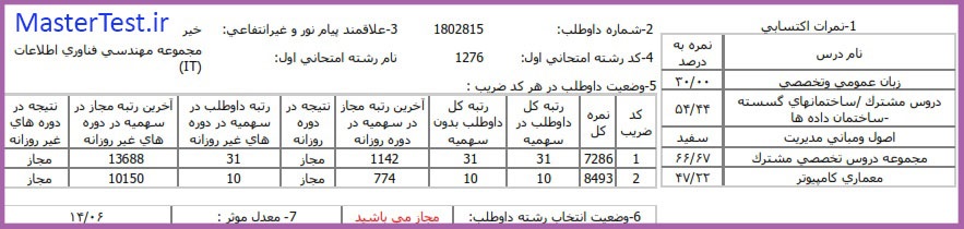 کارنامه رتبههای برتر کنکور کارشناسی ارشد رشته مهندسی فناوری اطلاعات (IT) کد ۱۲۷۶