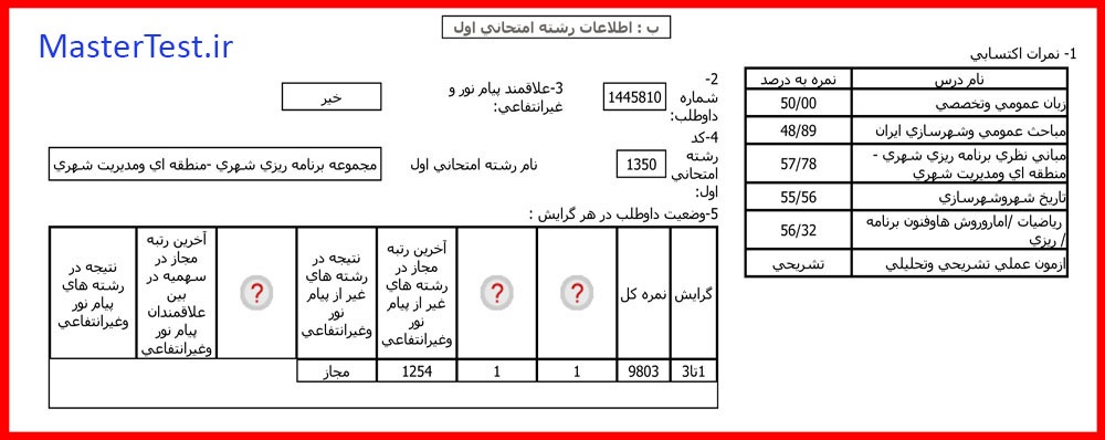 کارنامههای رتبههای برتر آزمون کارشناسی ارشد رشته برنامه ریزی شهری،منطقه ای و مدیریت شهری جهت اطلاع کاربران عزیز تقدیم میگردد: