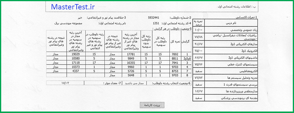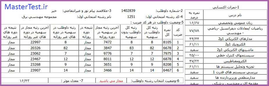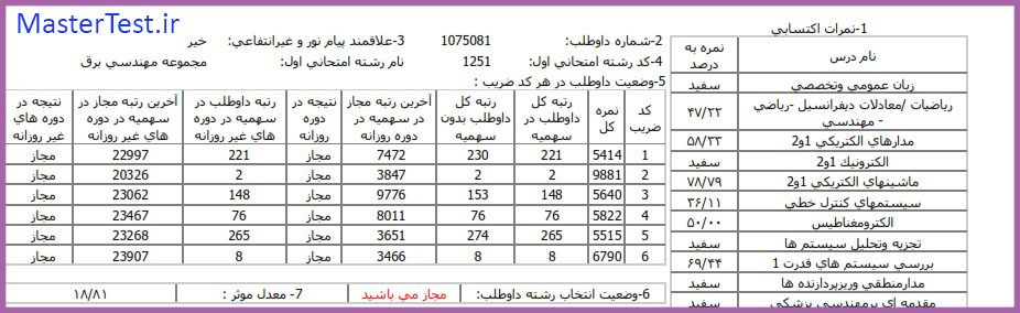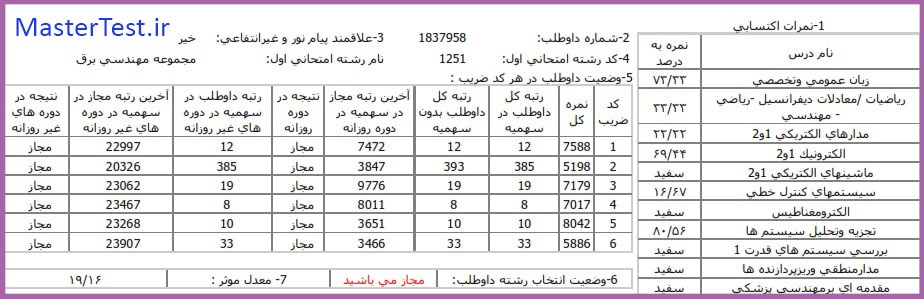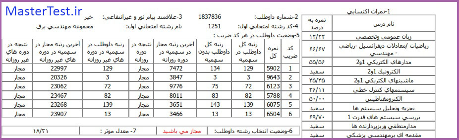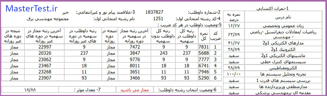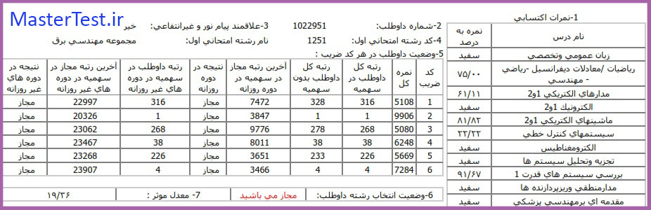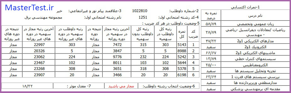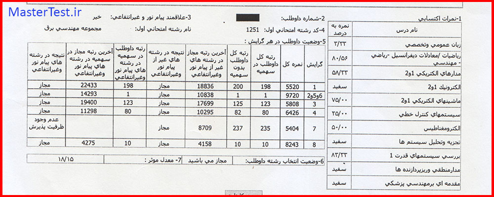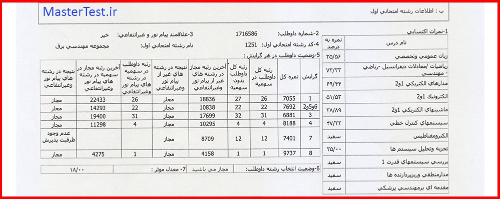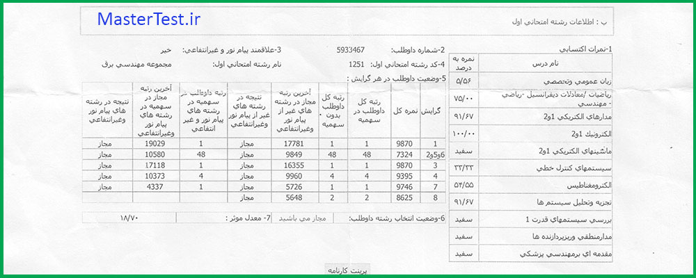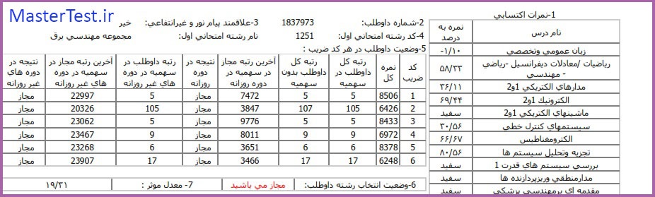کارنامههای رتبههای برتر آزمون کارشناسی ارشد رشته مهندسی برق جهت اطلاع کاربران عزیز تقدیم میگردد: