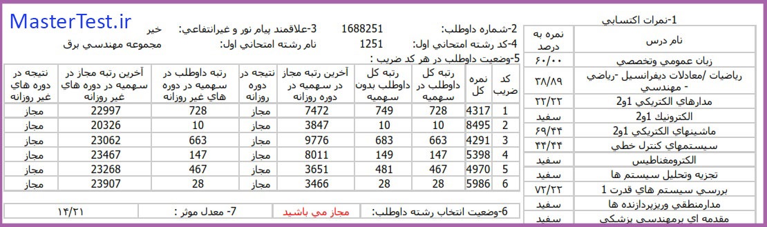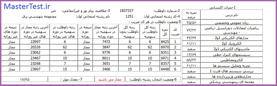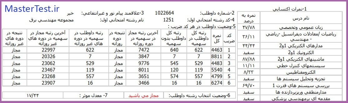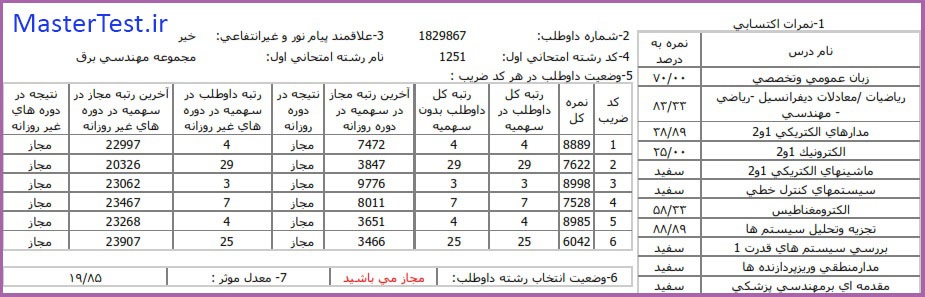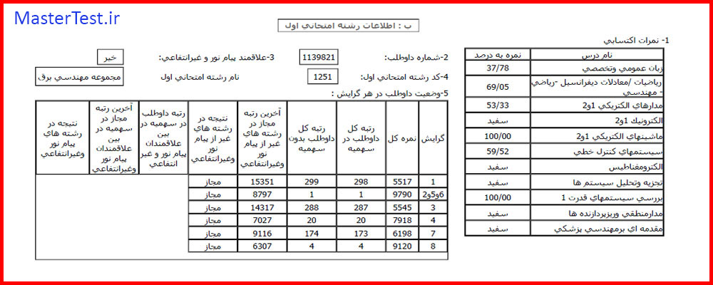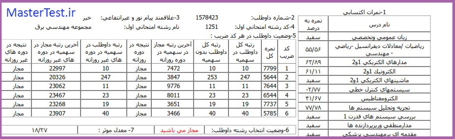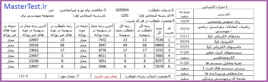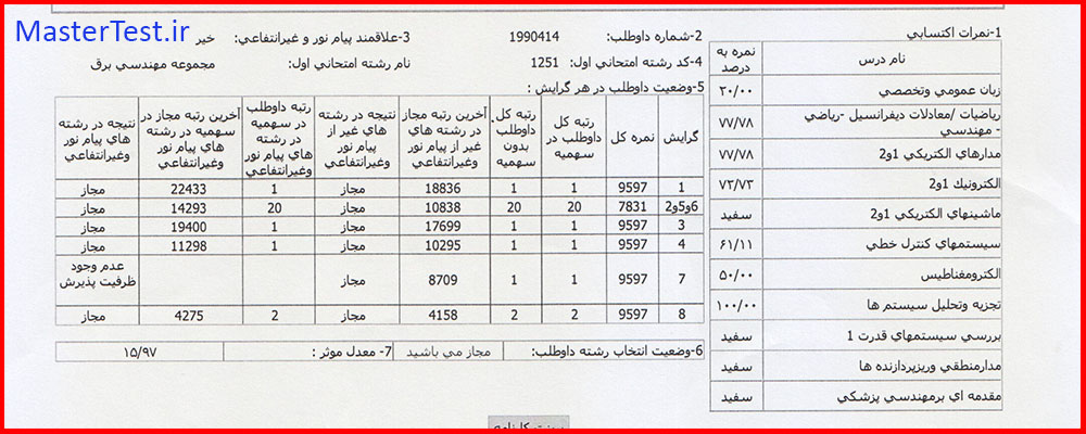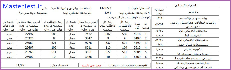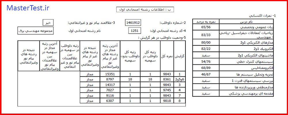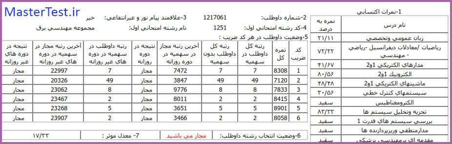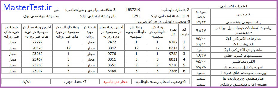 کارنامههای رتبههای برتر آزمون کارشناسی ارشد رشته مهندسی برق جهت اطلاع کاربران عزیز تقدیم میگردد: